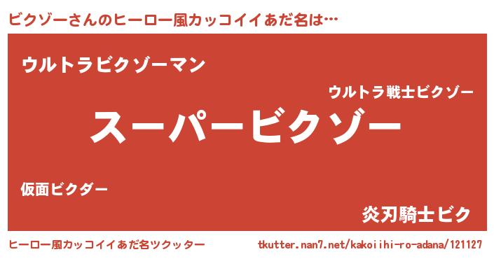 | 女子向けラノベタイトル風あだ名 | 『ビクゾー姫と円卓の騎士』 |