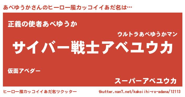 | 男性向けラノベタイトル風あだ名 | 『Re:あべゆうかから始める異世界生活』 |