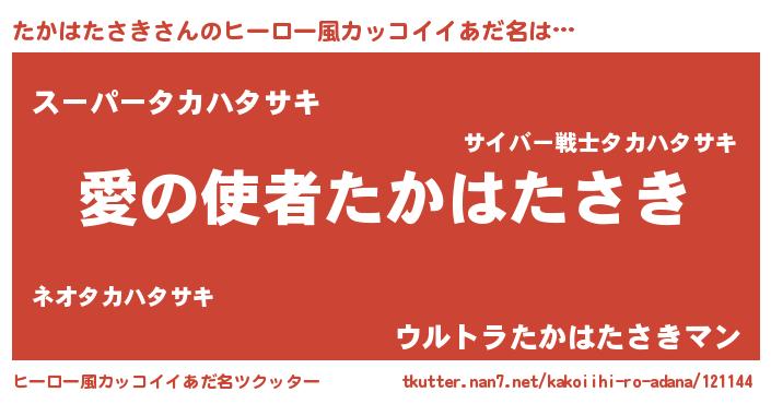 | 男性向けラノベタイトル風あだ名 | 『ノーゲーム・ノータカハタサキ』 |
