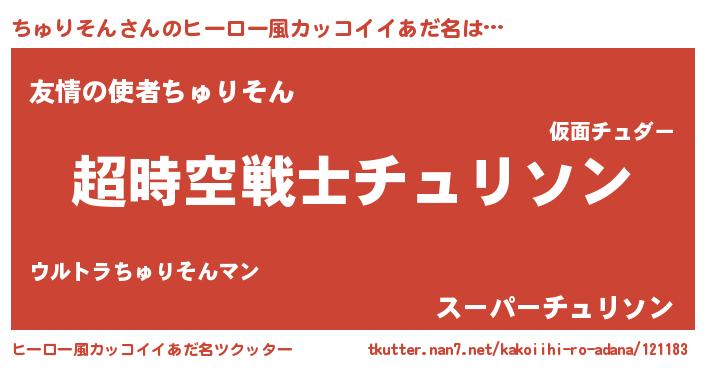 | 女子向けラノベタイトル風あだ名 | 『ちゅりそんなんてお断りですっ。』 |