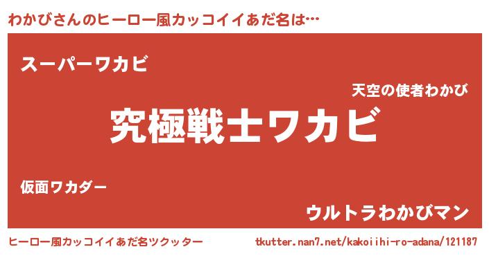 | 男性向けラノベタイトル風あだ名 | 『Re:わかびから始める異世界生活』 |
