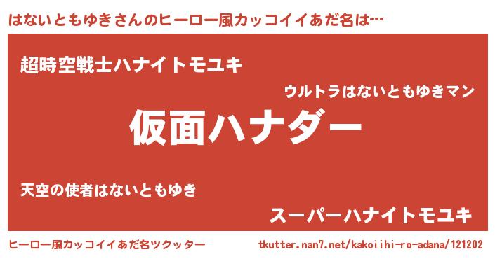 | 胡散臭い通販商品みたいなあだ名 | 『あなたにだけ特別に提供する100年もののヴィンテージワイン…その名も「はないともゆき」』 |