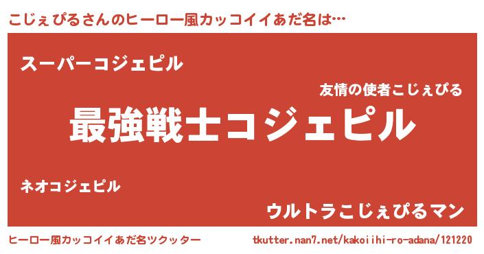 こじぇぴるさんのヒーロー風カッコイイあだ名をツクッター!