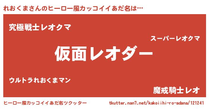 | 意味不明あだ名 | 『住所不定無職れおくま(74歳)』 |