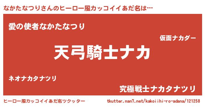 | 男性向けラノベタイトル風あだ名 | 『なかたなつりの嫁は女の子じゃないと思った?』 |