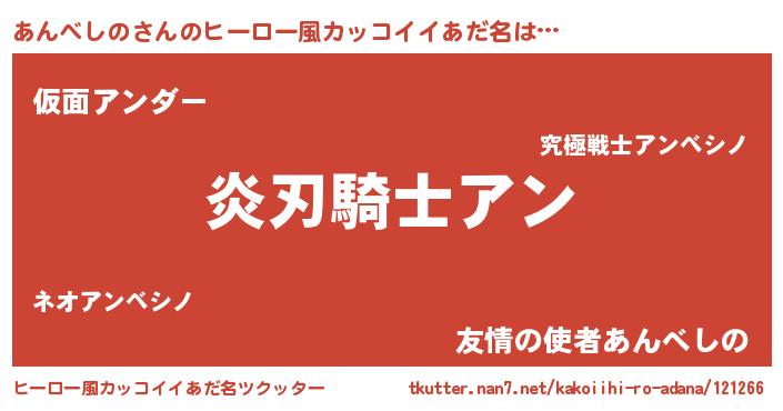 | 男性向けラノベタイトル風あだ名 | 『あんべしのの嫁は女の子じゃないと思った?』 |