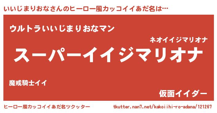 | 胡散臭い通販商品みたいなあだ名 | 『モテモテ間違いなし水晶球…その名も「いいじまりおな」』 |
