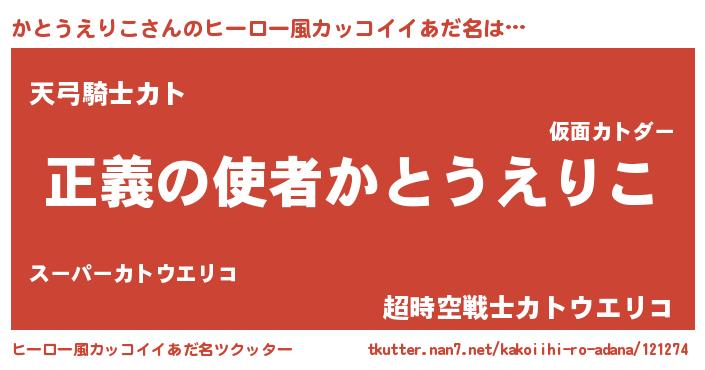 | ポケモン風あだ名 | 『カックウザ』『ヒカトウエリコ』 |