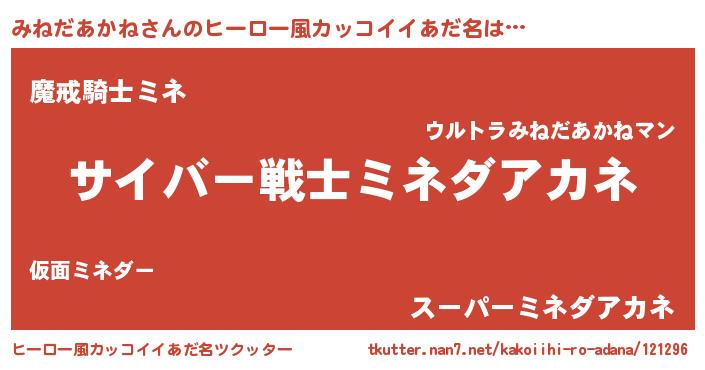 | 肩書あだ名 | 『みねだあかね総統』『みねだあかね中将』 |