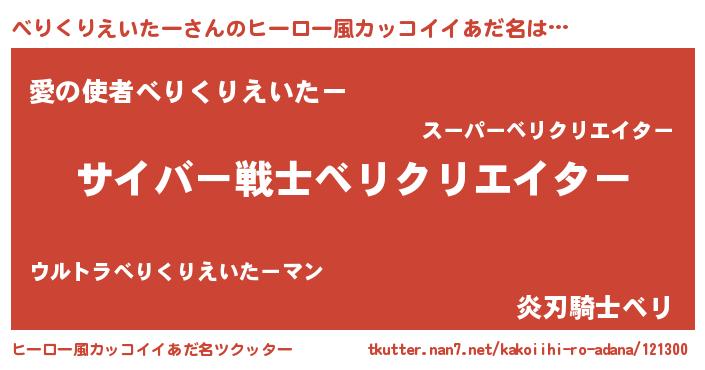 | 女子向けラノベタイトル風あだ名 | 『べりくりえいたーアンティーク』 |