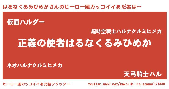 | ヘコむあだ名 | 『はるぷりん』『はるなくるみひめか(笑)』 |