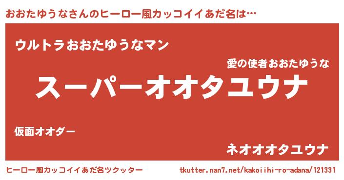| 男性向けラノベタイトル風あだ名 | 『オオタユウナアートオンライン』 |