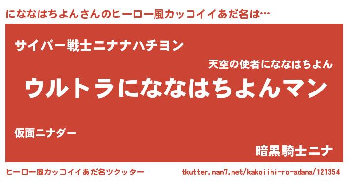 | 欧米人風あだ名 | 『にななはちよんクリステル』 |