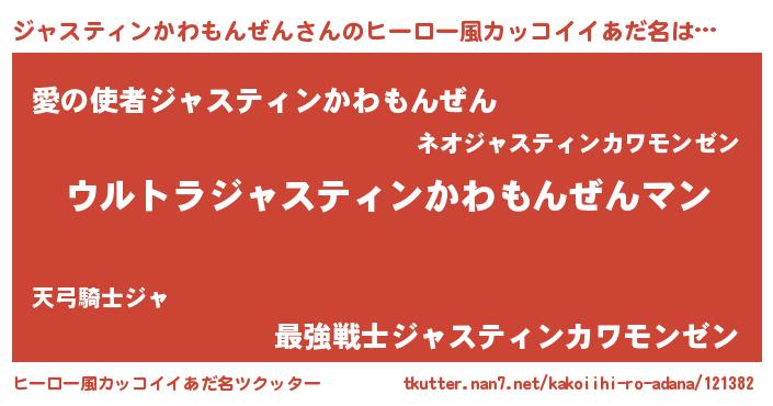 | 意味不明あだ名 | 『ジャスティンかわもんぜんフォーエバー』 |