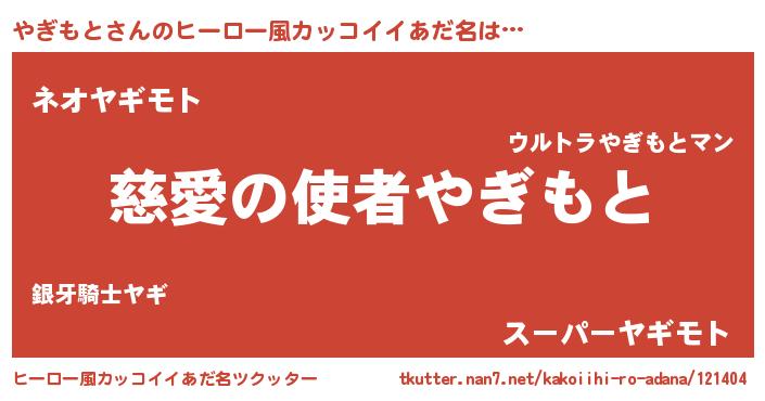 やぎもとさんのヒーロー風カッコイイあだ名をツクッター!