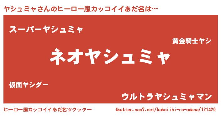 | ヘコむあだ名 | 『ヤシュミャ(笑)』『ヤシにー』 |