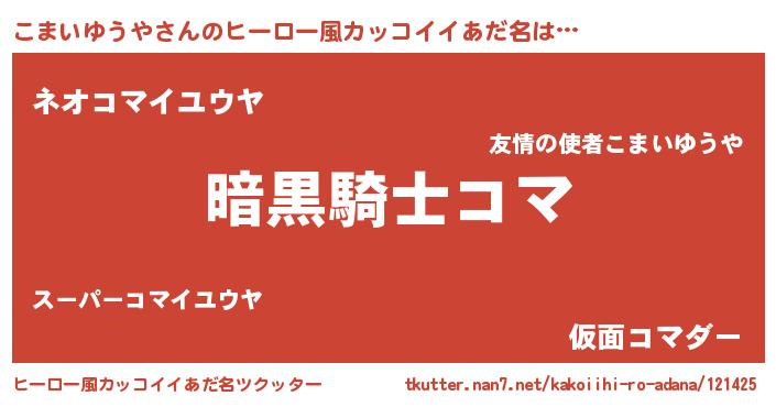 | 胡散臭い通販商品みたいなあだ名 | 『信頼と実績のサプリメント…その名も「こまいゆうや」』 |