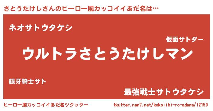 | 男性向けラノベタイトル風あだ名 | 『やはりさとうたけしの青春ラブコメはまちがっている 』 |