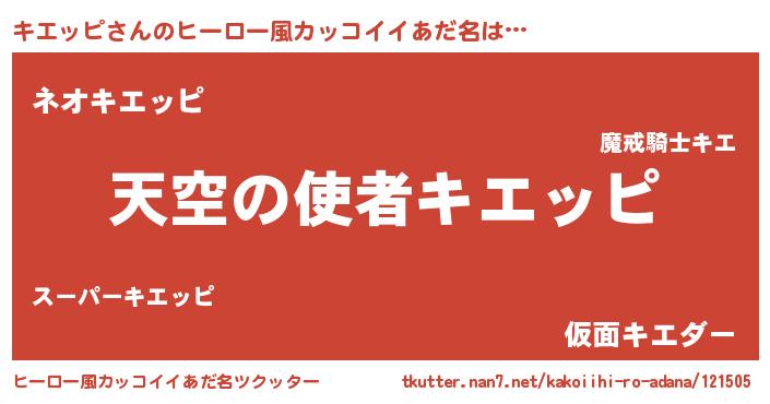 | 男性向けラノベタイトル風あだ名 | 『ノーゲーム・ノーキエッピ』 |