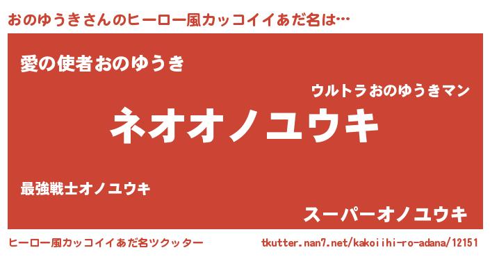 | 男性向けラノベタイトル風あだ名 | 『おのゆうきという概念が存在しない退屈な世界 』 |