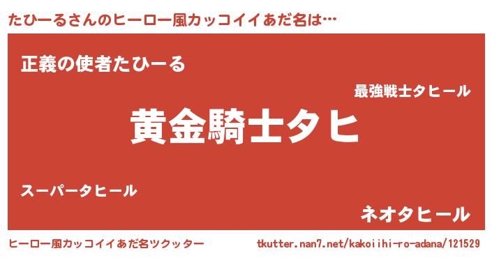 | 胡散臭い通販商品みたいなあだ名 | 『信頼と実績のサプリメント…その名も「たひーる」』 |