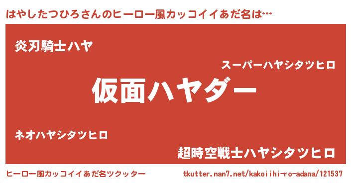 | 肩書あだ名 | 『はやしたつひろ上級大将』 |