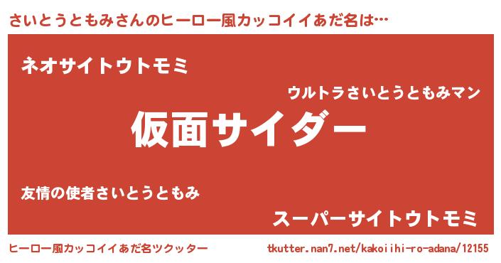 | ヘコむあだ名 | 『さいとうともみ(遠い目)』『さいもー』 |