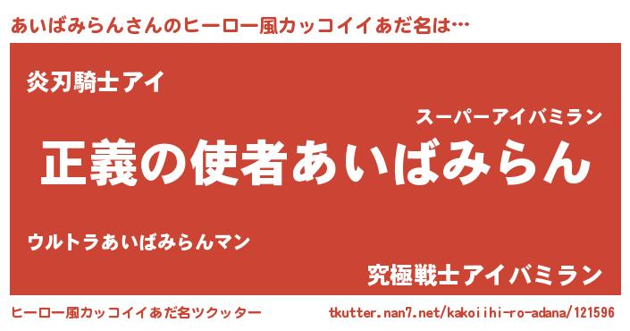 | 男性向けラノベタイトル風あだ名 | 『アイバミランスレイヤー』 |