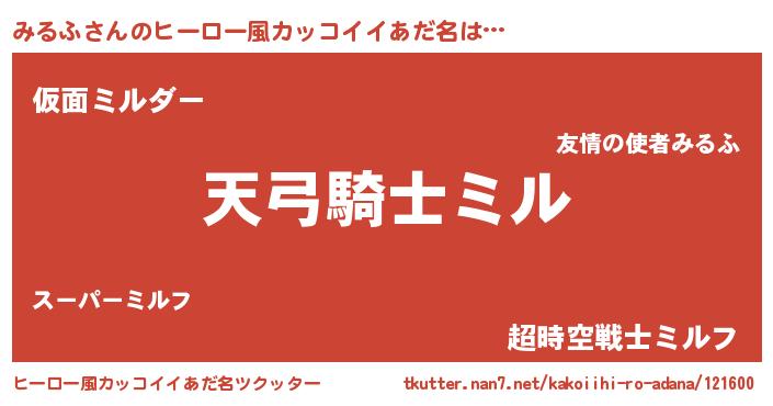 | 意味不明あだ名 | 『とにかく怪しいみるふ』『自称みるふ』 |