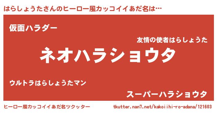 | 胡散臭い通販商品みたいなあだ名 | 『絶対に幸福をもたらす水素水…その名も「はらしょうた」』 |