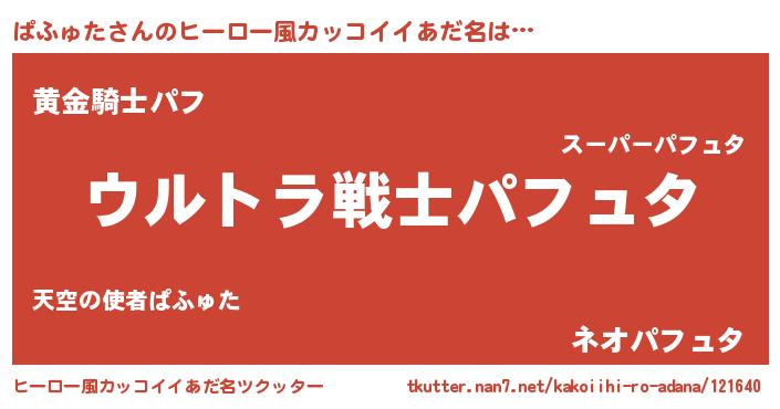| 男性向けラノベタイトル風あだ名 | 『魔法科高校のぱふゅた』 |