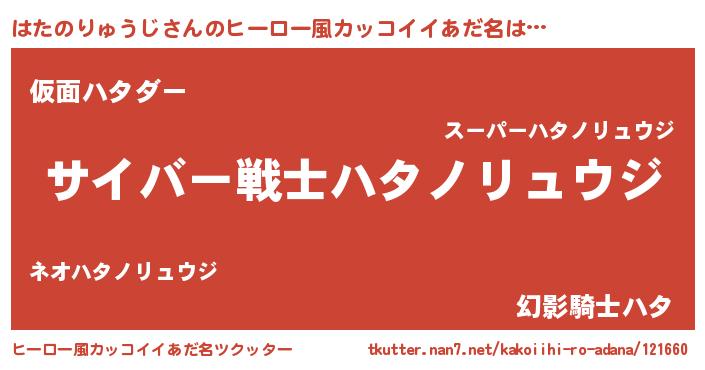 | 肩書あだ名 | 『はたのりゅうじ閣下』 |
