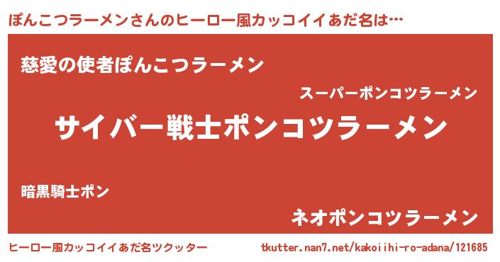 | 男性向けラノベタイトル風あだ名 | 『はたらくぽんこつラーメンさま!』 |