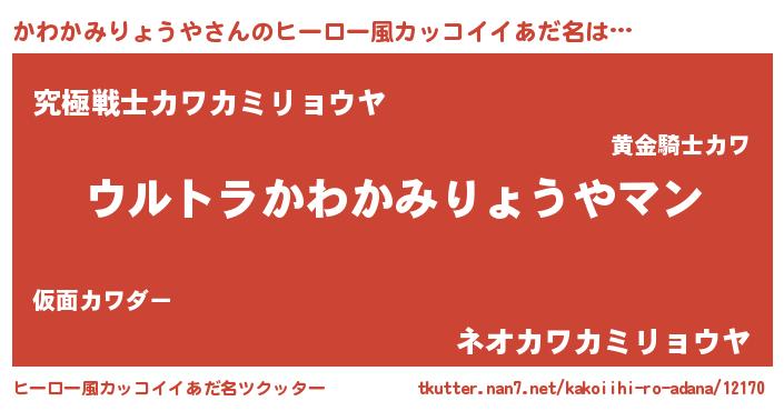 | ファンタジー風あだ名 | 『エターナルカワカミリョウヤー』 |