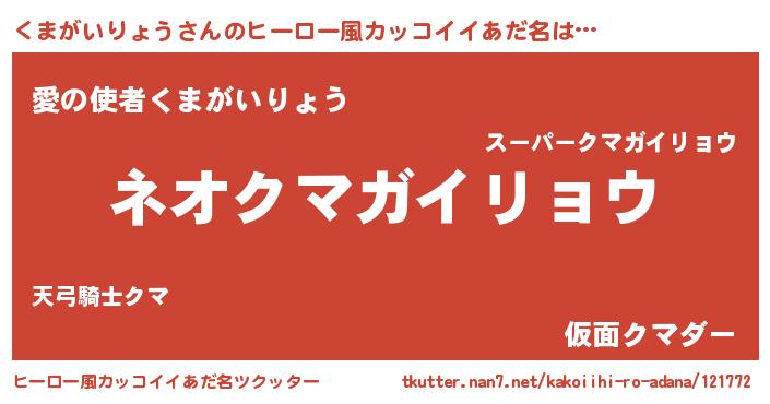 | 意味不明あだ名 | 『永久保存くまがいりょう』 |