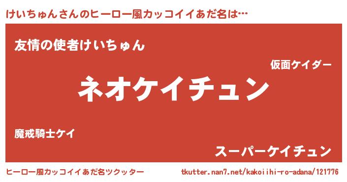 | ヘコむあだ名 | 『けいちゅん(苦笑)』『けいにゅー』 |