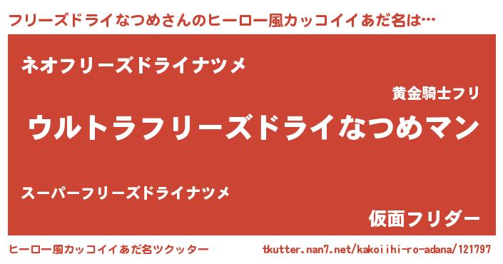 | 女子向けラノベタイトル風あだ名 | 『フリーズドライなつめの雑貨屋さん』 |