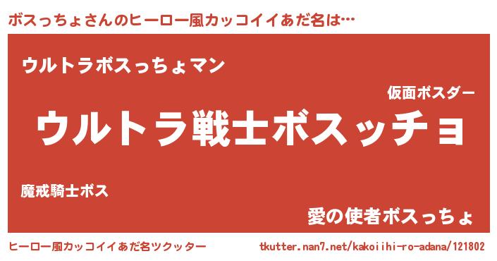 | ヘコむあだ名 | 『豆乳』『ボスお』『ボスっちょ(笑)』 |