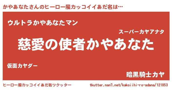 | 女子向けラノベタイトル風あだ名 | 『かやあなた恋絵巻』 |