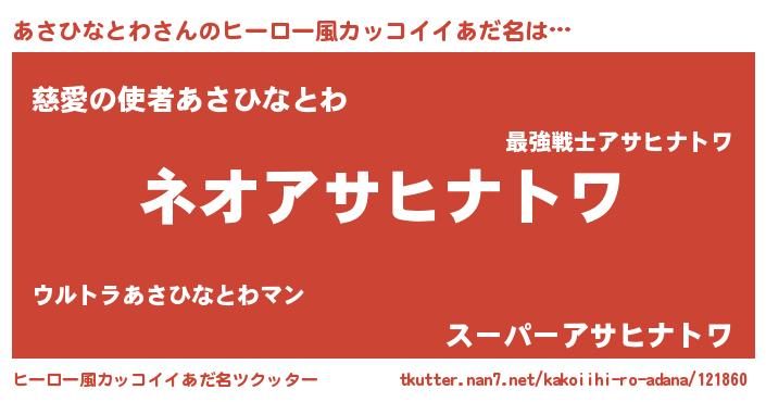 | 欧米人風あだ名 | 『アンジェラ・あさひなとわ』 |