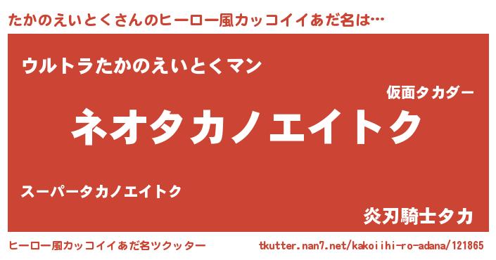 | 男性向けラノベタイトル風あだ名 | 『たかのえいとくという概念が存在しない退屈な世界 』 |