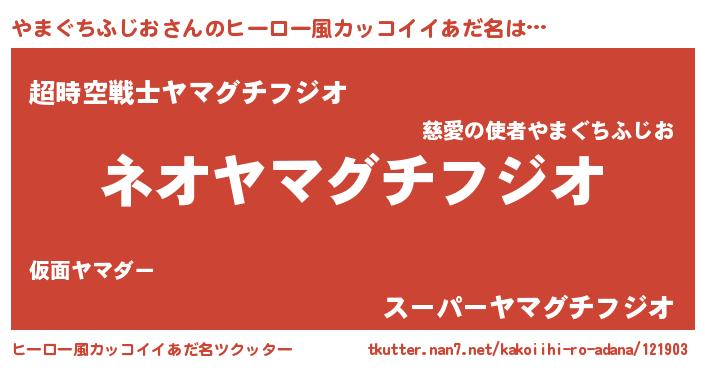 | 胡散臭い通販商品みたいなあだ名 | 『来世でも幸せになれる健康食品…その名も「やまぐちふじお」』 |
