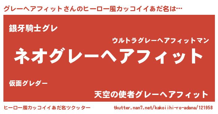 | 男性向けラノベタイトル風あだ名 | 『誰もが恐れるあのグレーヘアフィットが、ぼくの専属メイドになるようです。』 |