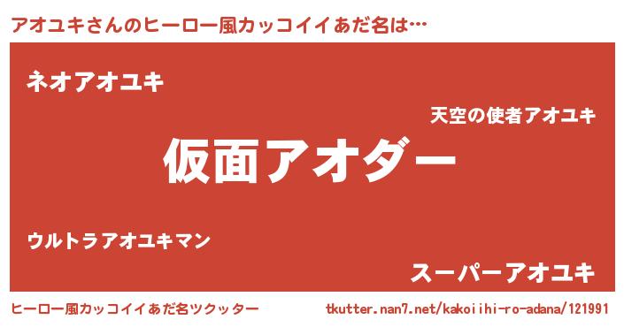 | 男性向けラノベタイトル風あだ名 | 『この素晴らしい世界にアオユキを!』 |