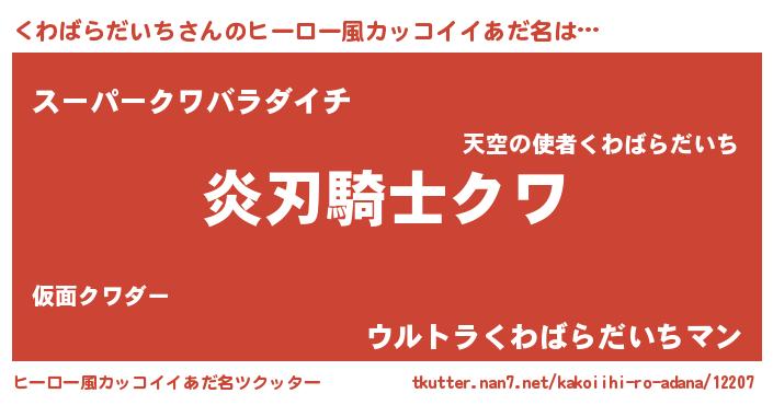 | 意味不明あだ名 | 『とにかく怪しいくわばらだいち』 |