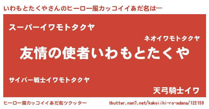 | 胡散臭い通販商品みたいなあだ名 | 『100人中100人が認めたイリジウム磁石…その名も「いわもとたくや」』 |