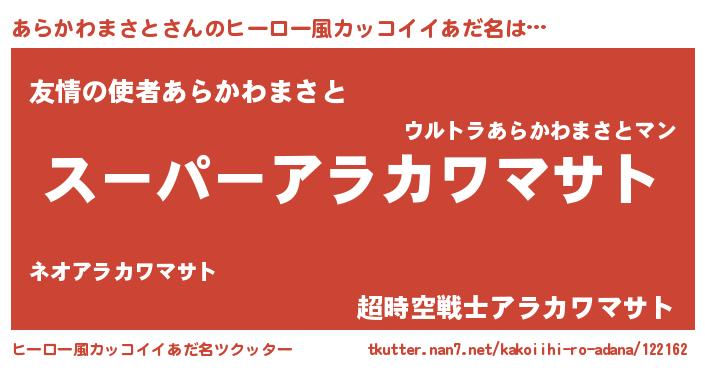 | 男性向けラノベタイトル風あだ名 | 『アラカワマサトアートオンライン』 |