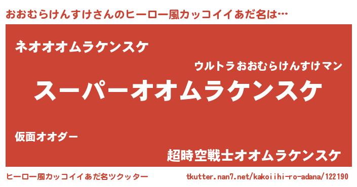 | 男性向けラノベタイトル風あだ名 | 『オオムラケンスケアートオンライン』 |