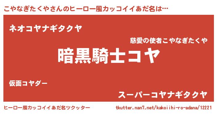 | 意味不明あだ名 | 『とにかく怪しいこやなぎたくや』 |