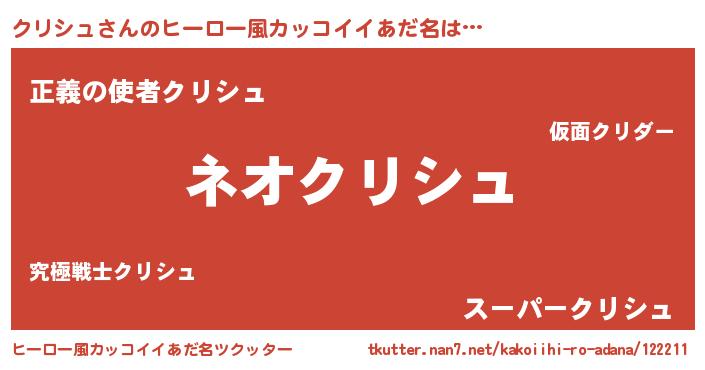 | ヘコむあだ名 | 『クリシュ(遠い目)』『クリふぇ~』 |